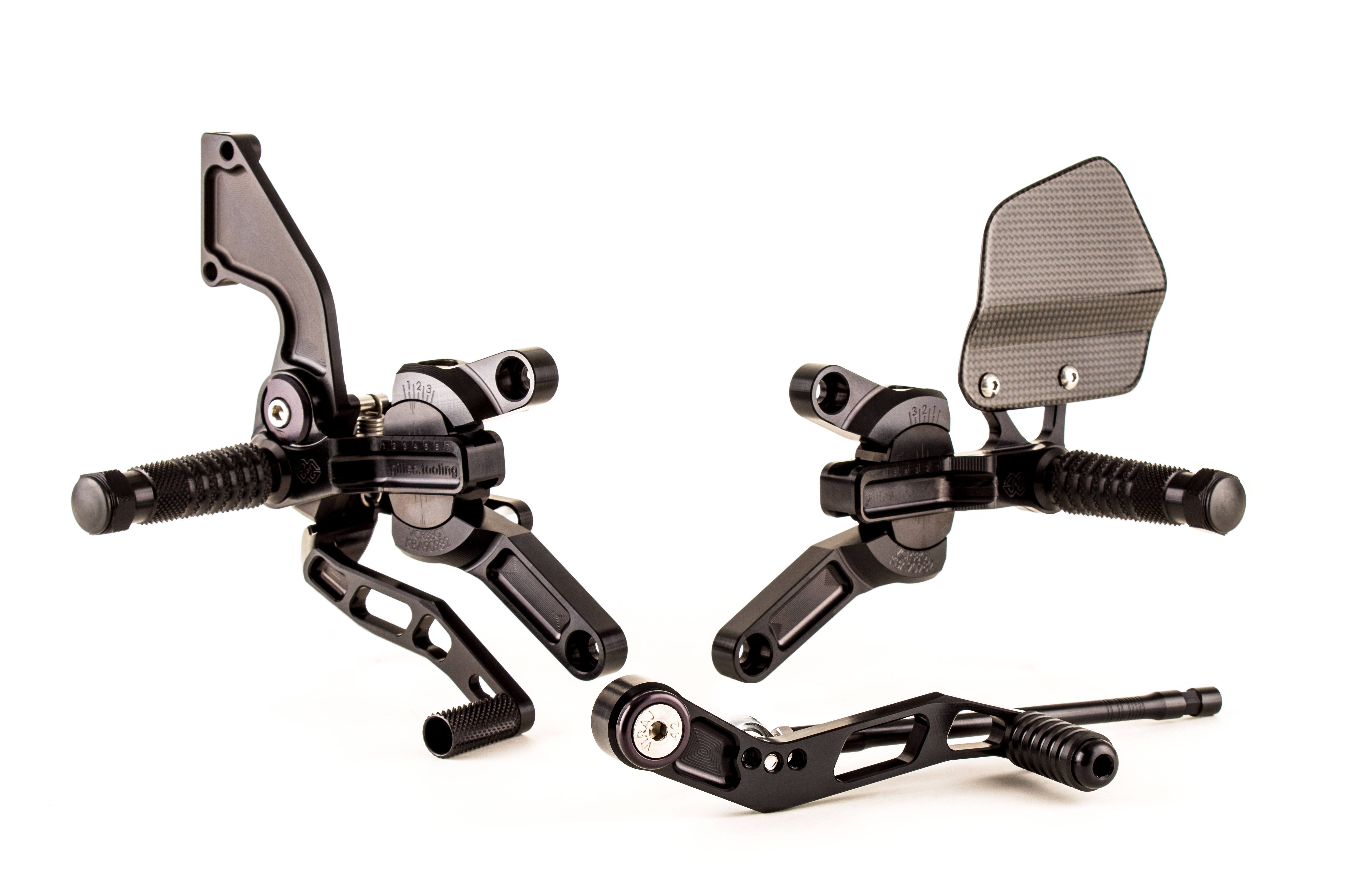 Estriberas retrasadas Gilles Tooling VCR-H04-B VCR38 negro. Las estriberas de moto Gilles Tooling VCR38GT están dotadas de un avanzado sistema de regulación que le permite multitud de posibilidades de ajuste de los estribos, recorrido de cambio y longitud del pie. Están fabricadas en aluminio de alta calidad con mecanizado de alta precisión mediante CNC para ofrecer un peso ultraligero además de una resistencia y rigidez óptimas. Precio de la pareja. Las imágenes del producto son orientativas.