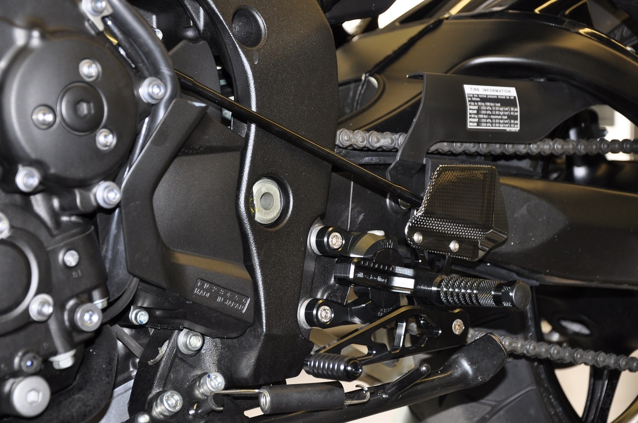 Estriberas retrasadas Gilles Tooling VCR-Y03-B VCR38 negro. Las estriberas de moto Gilles Tooling VCR38GT están dotadas de un avanzado sistema de regulación que le permite multitud de posibilidades de ajuste de los estribos, recorrido de cambio y longitud del pie. Están fabricadas en aluminio de alta calidad con mecanizado de alta precisión mediante CNC para ofrecer un peso ultraligero además de una resistencia y rigidez óptimas. Precio de la pareja. Las imágenes del producto son orientativas.