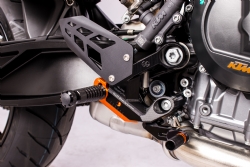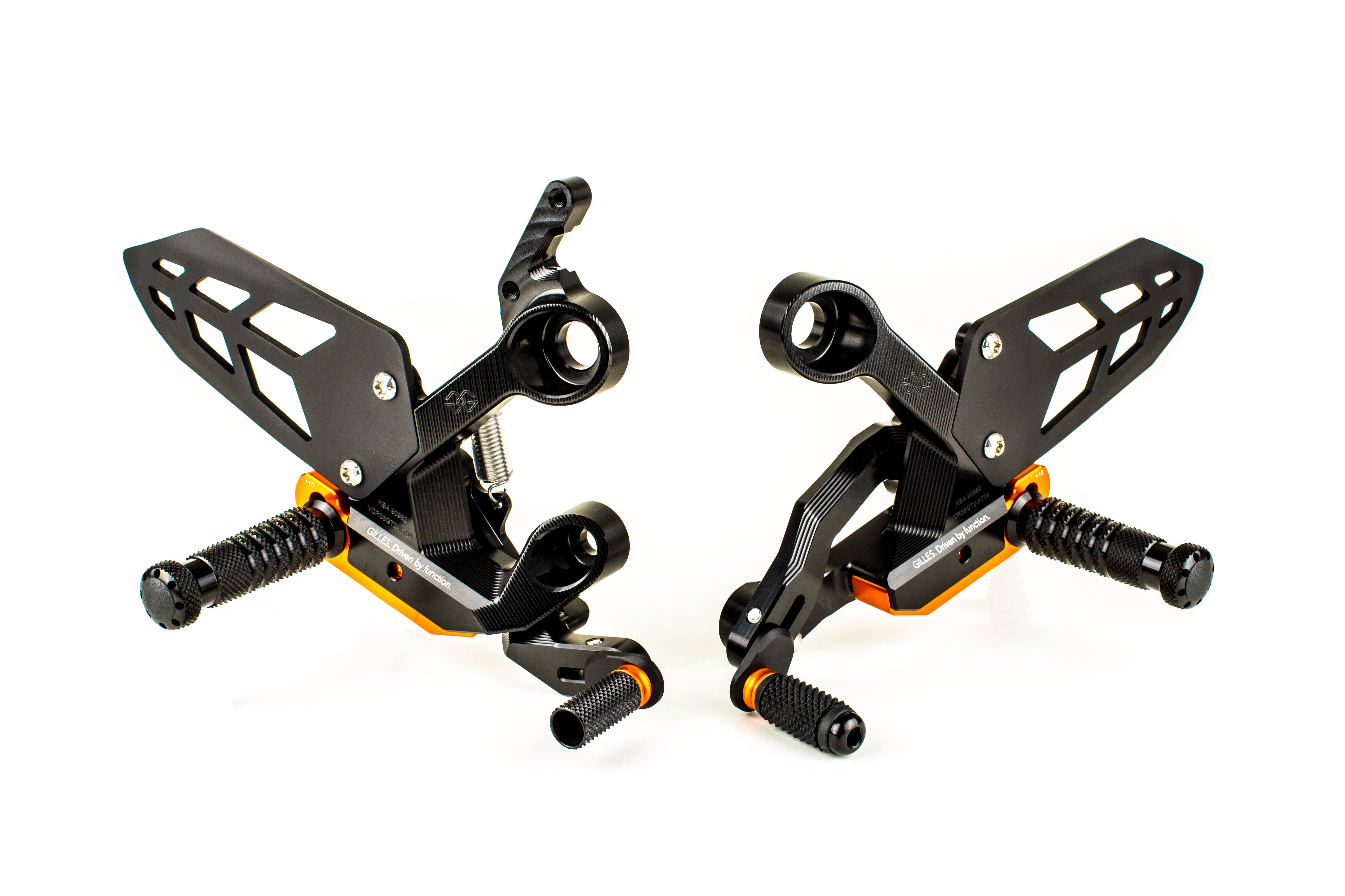 Estriberas retrasadas Gilles Tooling VCR38GT2-KT04-BO VCR38 negro / naranja. Las estriberas de moto Gilles Tooling VCR38GT están dotadas de un avanzado sistema de regulación que le permite multitud de posibilidades de ajuste de los estribos, recorrido de cambio y longitud del pie. Están fabricadas en aluminio de alta calidad con mecanizado de alta precisión mediante CNC para ofrecer un peso ultraligero además de una resistencia y rigidez óptimas. Precio de la pareja. Las imágenes del producto son orientativas.