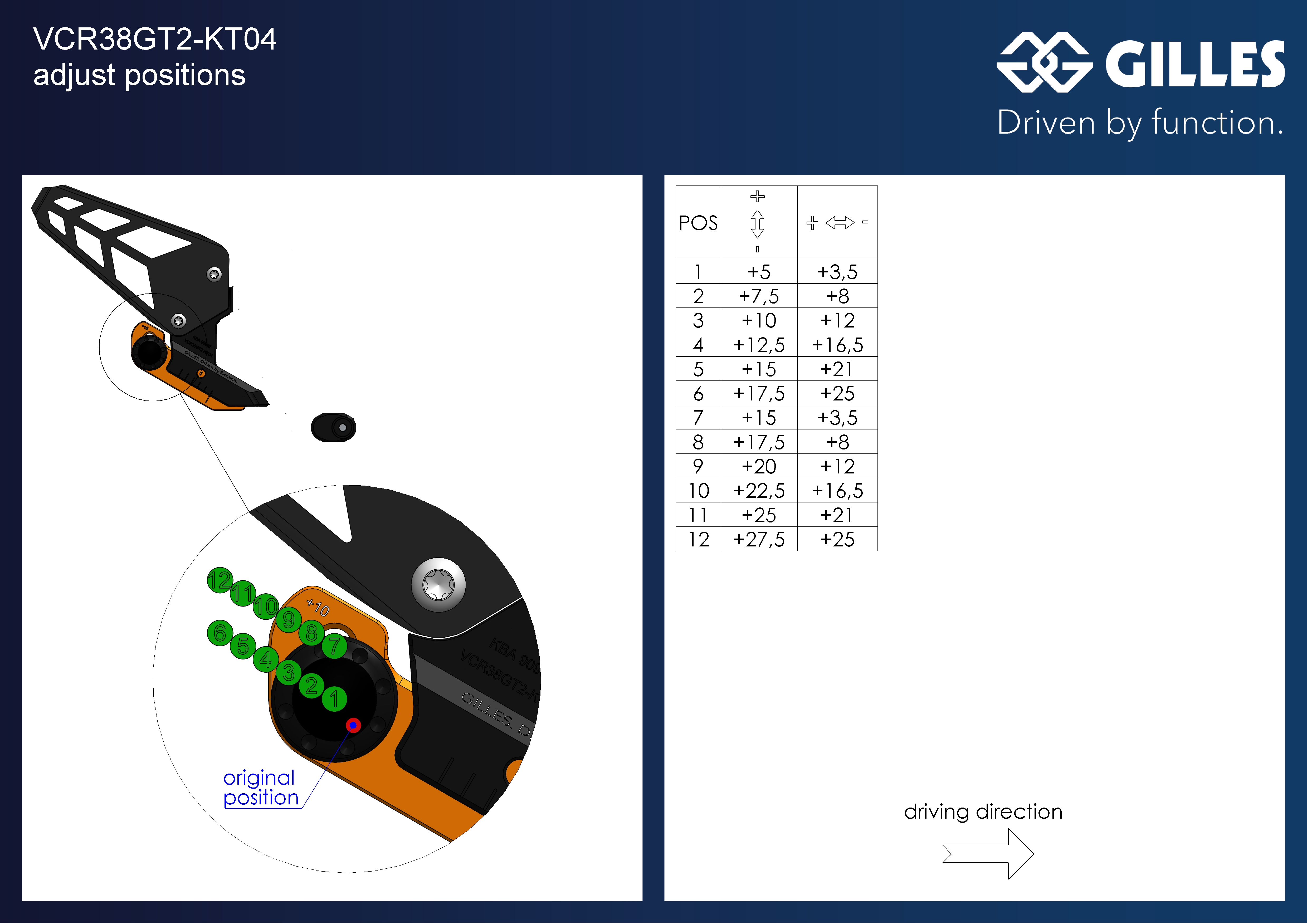 Estriberas retrasadas Gilles Tooling VCR38GT2-KT04-BO VCR38 negro / naranja