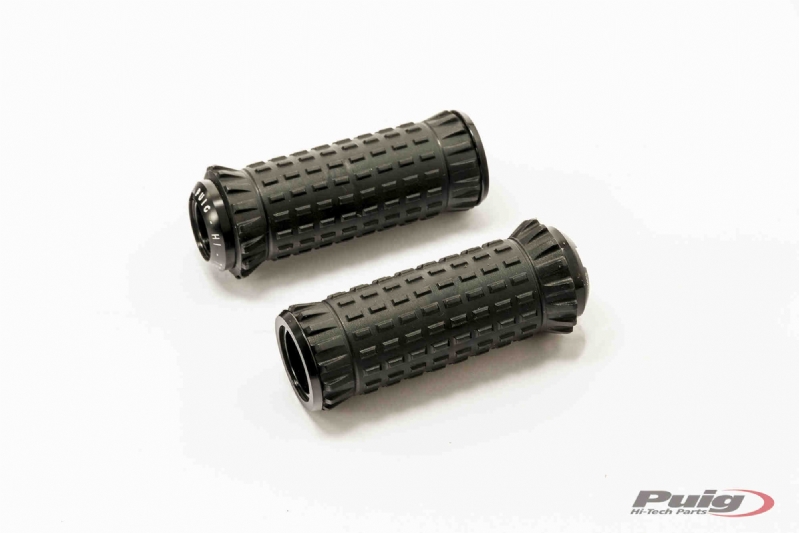 Estriberas Puig 9193N R-Fighter S Hi-Tech Negro (soporte no incluido). Las nuevas estriberas Puig 9193 R-Fighter S de la gama Hi-Tech poseen un diseño pensado para ofrecer un excelente grip. Realizadas en aluminio con proceso CNC mecanizado, las estriberas R-Fighter S son muy resistentes y ofrecen un peso muy reducido (tan sólo 90 gramos). Ofrecen precisión de regulación, permite el aumento de la altura libre y están disponibles en varios colores (herrajes sólo en negro). Ver soportes de estribo en productos relacionados. Más información en el Pdf adjunto. Los colores mostrados son sólo a modo de orientación, pudiendo variar en tono o tipo de anodizado.