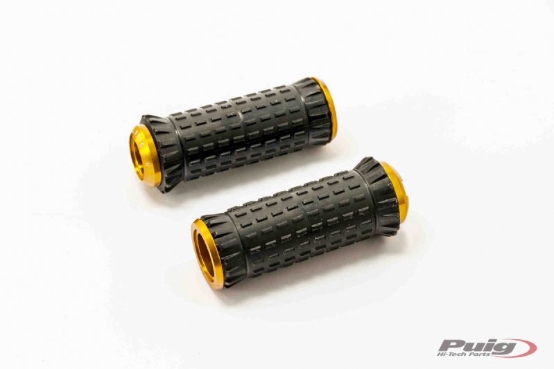 Estriberas Puig 9193O R-Fighter S Hi-Tech Oro (soporte no incluido). Las nuevas estriberas Puig 9193 R-Fighter S de la gama Hi-Tech poseen un diseño pensado para ofrecer un excelente grip. Realizadas en aluminio con proceso CNC mecanizado, las estriberas R-Fighter S son muy resistentes y ofrecen un peso muy reducido (tan sólo 90 gramos). Ofrecen precisión de regulación, permite el aumento de la altura libre y están disponibles en varios colores (herrajes sólo en negro). Ver soportes de estribo en productos relacionados. Más información en el Pdf adjunto. Los colores mostrados son sólo a modo de orientación, pudiendo variar en tono o tipo de anodizado.