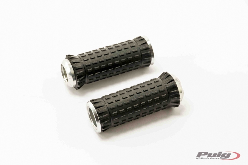 Estriberas Puig 9193P R-Fighter S Hi-Tech Plata (soporte no incluido). Las nuevas estriberas Puig 9193 R-Fighter S de la gama Hi-Tech poseen un diseño pensado para ofrecer un excelente grip. Realizadas en aluminio con proceso CNC mecanizado, las estriberas R-Fighter S son muy resistentes y ofrecen un peso muy reducido (tan sólo 90 gramos). Ofrecen precisión de regulación, permite el aumento de la altura libre y están disponibles en varios colores (herrajes sólo en negro). Ver soportes de estribo en productos relacionados. Más información en el Pdf adjunto. Los colores mostrados son sólo a modo de orientación, pudiendo variar en tono o tipo de anodizado.