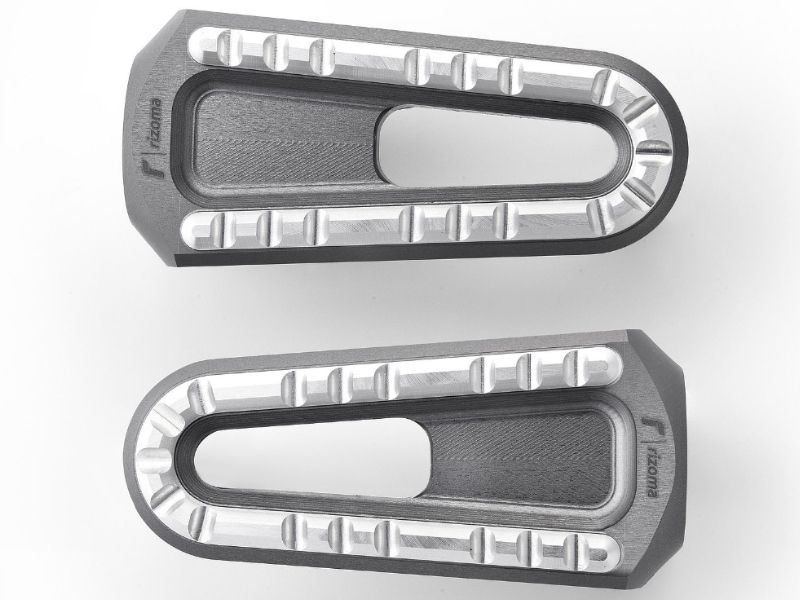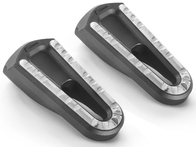 Estribos Rizoma PE642D Thunder Gris. Estilo y funcionalidad carcaterizan a los nuevos estribos Rizoma Street PE642D. Realizados a partir de un bloque macizo de aluminio y mecanizados mediante CNC, aportan mayor feeling, un aumento del confort en la conducción y más agarre. Se vende el par.