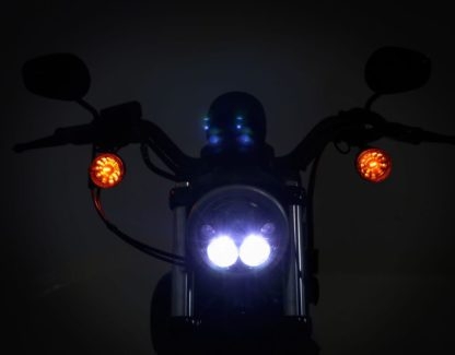 Faro de LED Denali M5 E-Mark TT-M5E. El faro delantero de LED para moto universal Denali M5 con certificación E-Mark, es un reemplazo plug-and-play directo para el faro sellado original de 5,75 pulgadas. Tiene luces bajas extra anchas, luces altas bajas y luces altas de halo. Al insertar el módulo del faro Denali M5 en la carcasa del faro existente de la motocicleta, el haz es tres veces más largo que el de un faro halógeno típico y el doble que el de un faro LED típico. El diseño óptico único y el acabado en cromo negro le darán a tu motocicleta un aspecto moderno y personalizado al tiempo que mejoran la visibilidad del tráfico que se aproxima, incluso a la luz del día. Para desbloquear todo el potencial de los faros LED Denali, agrega un adaptador opcional plug and play para mantener las luces bajas encendidas cuando cambie a las luces altas.