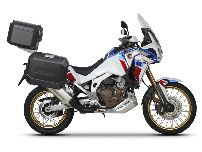 Fijación 4P System Shad H0DV104P Honda CRF1100L Africa Twin 2020-2022. El portamaletas lateral Shad 4P System está fabricado con una estructura de acero recubierta de pintura metálica de alta dureza. Con sus 20 mm de grosor, el soporte lateral 4P System es actualmente el más grueso del mercado. Además va reforzado con una barra transversal para las salidas más extremas, proporcionando la mejor robustez en combinación con las maletas. Las maletas laterales side case Shad Terra sólo se puede fijar a la moto mediante el nuevo portamaletas específico 4P System.