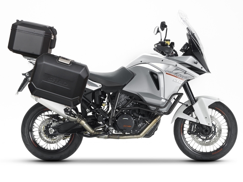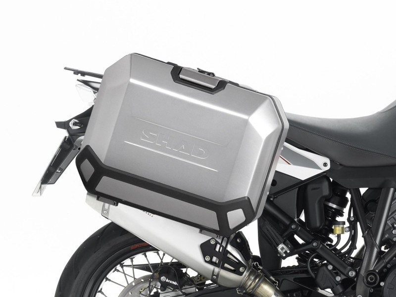 Fijación 4P System Shad K0SP194P. El portamaletas lateral Shad 4P System está fabricado con una estructura de acero recubierta de pintura metálica de alta dureza. Con sus 20 mm de grosor, el soporte lateral 4P System es actualmente el más grueso del mercado. Además va reforzado con una barra transversal para las salidas más extremas, proporcionando la mejor robustez en combinación con las maletas. Las maletas laterales side case Shad Terra sólo se puede fijar a la moto mediante el nuevo portamaletas específico 4P System.