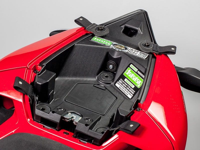 Fijación Kriega KAPGL. Kit de fijación Kriega KAPGL específico para la Ducati 899 y 1199 Panigale y que permite el transporte de las bolsas Kriega Drypack en el colín. Está diseñado para un montaje y desmontaje rápido sin ninguna modificación sobre la moto.