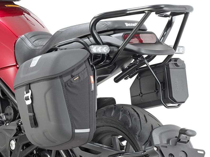 Soporte alforjas Givi TMT8704 Benelli Leoncino 500 2017. Soporte específico Givi TMT8704 y que permite la fijación de las alforjas Givi MT501 de la línea Metro-T.