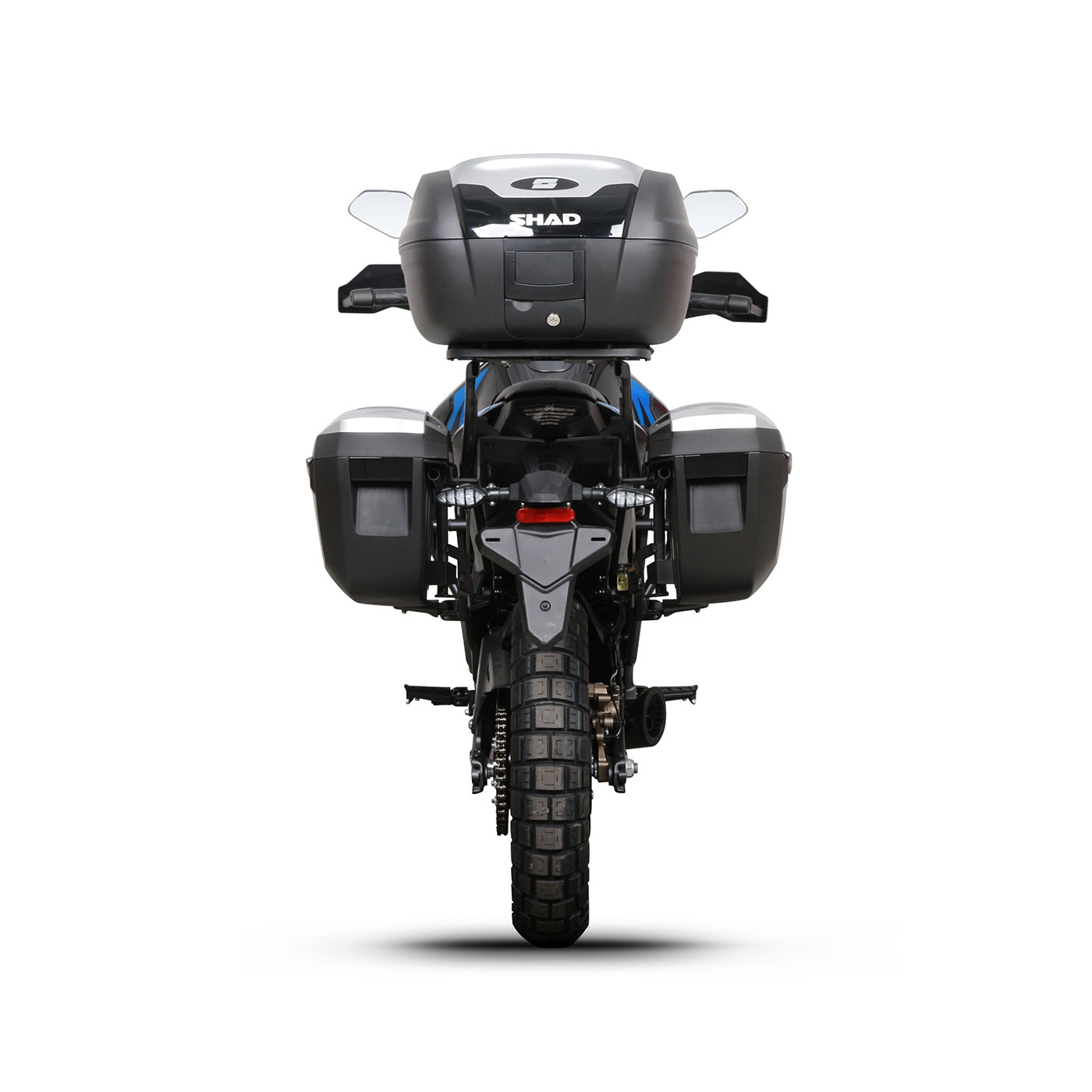 Tanto los volúmenes de la maleta como la inclinación de la fijación 3P System se han pensado para conseguir desplazar el peso del conjunto lo más posible hacia el centro de gravedad de la moto. Esto le otorga una mayor seguridad y estabilidad al circular con carga.