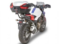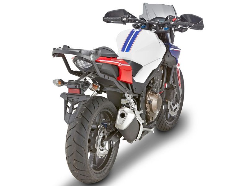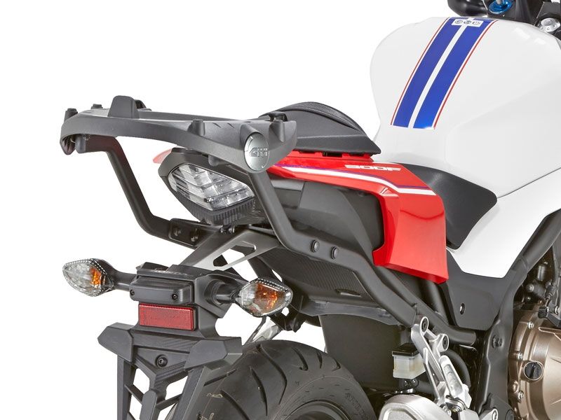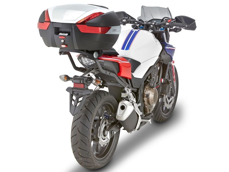 Soporte maleta Givi 1152FZ Honda CB 500 F 2016. Nuevo soporte de maleta adaptador posterior Givi 1152FZ diseñado específicamente para la CB 500 F 2016 y que permite la fijación de las maletas Givi con sistema Monokey o Monolock. El soporte Givi 1152FZ está diseñado con avanzada tecnología para ofrecer la máxima solidez. Para el montaje del soporte, es necesario combinar con las parrillas Givi Monokey M5, M7 o las parrillas Monolock M5M y M6M (ver en productos relacionados).