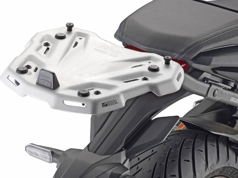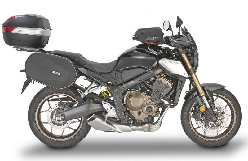 Soporte maleta Givi 1173FZ Honda CB 650 R 2019. Nuevo soporte de maleta adaptador posterior Givi 1173FZ diseñado específicamente para la CB 650 R 2019 y que permite la fijación de las maletas Givi con sistema Monokey o Monolock. El soporte Givi 1173FZ está diseñado con avanzada tecnología para ofrecer la máxima solidez. A combinar con la parrilla Monokey M5, M8A y M8B, el portabolsa de aluminio EX2M o las parrillas Monolock M5M y M6M. Las parrillas Monokey M8A, M8B no permiten la instalación de un kit de luz stop sobre la maleta y/o dispositivo de mando a distancia para la apertura de la maleta. No incluye la parrilla Givi M9A (como se muestra en las imágenes).