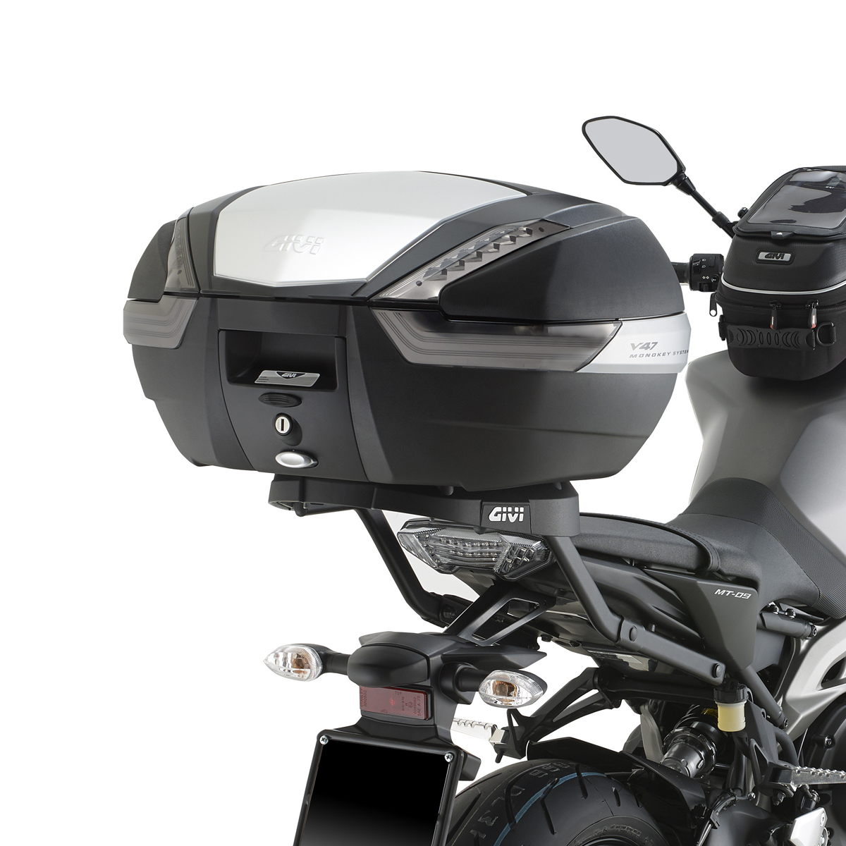Soporte maleta Givi 2115FZ Yamaha MT-09 / XSR 900 2016. Nuevo soporte de maleta adaptador posterior Givi 2115FZ diseñado específicamente para este modelo de moto y que permite la fijación de las maletas Givi con sistema Monokey o Monolock. El soporte Givi 2130FZ está diseñado con avanzada tecnología para ofrecer la máxima solidez. Para el montaje del soporte, es necesario combinar con las parrillas Givi Monokey M5, M7, M8A, M8B o las parrillas Monolock M5M y M6M (ver en productos relacionados). Carga máxima de 6 Kg.