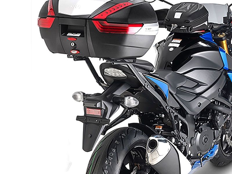 Soporte maleta trasera Givi 3113FZ Suzuki GSX S750 2017. Nuevo soporte de maleta adaptador posterior Givi 3113FZ diseñado específicamente y que permite la fijación de las maletas Givi con sistema Monokey o Monolock. El soporte Givi 3113FZ está diseñado con avanzada tecnología para ofrecer la máxima solidez. Se debe combinar con las parrillas Givi Monokey M5, M7, M8A y M8B o las parrillas Monolock M5M y M6M. No permite la instalación de un kit de luz stop sobre la maleta y/o dispositivo de mando a distancia para la apertura de la maleta. Carga máxima 6 Kg.