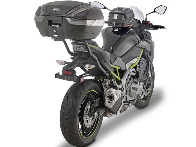 Soporte maleta trasera Givi 4118FZ Kawasaki Z 900 2017. Nuevo soporte de maleta adaptador posterior Givi 4118FZ diseñado específicamente y que permite la fijación de las maletas Givi con sistema Monokey o Monolock. El soporte Givi 4118FZ está diseñado con avanzada tecnología para ofrecer la máxima solidez. Se debe combinar con las parrillas Givi Monokey M5, M7, M8A y M8B o las parrillas Monolock M5M y M6M. No permite la instalación de un kit de luz stop sobre la maleta y/o dispositivo de mando a distancia para la apertura de la maleta. Carga máxima 6 Kg.