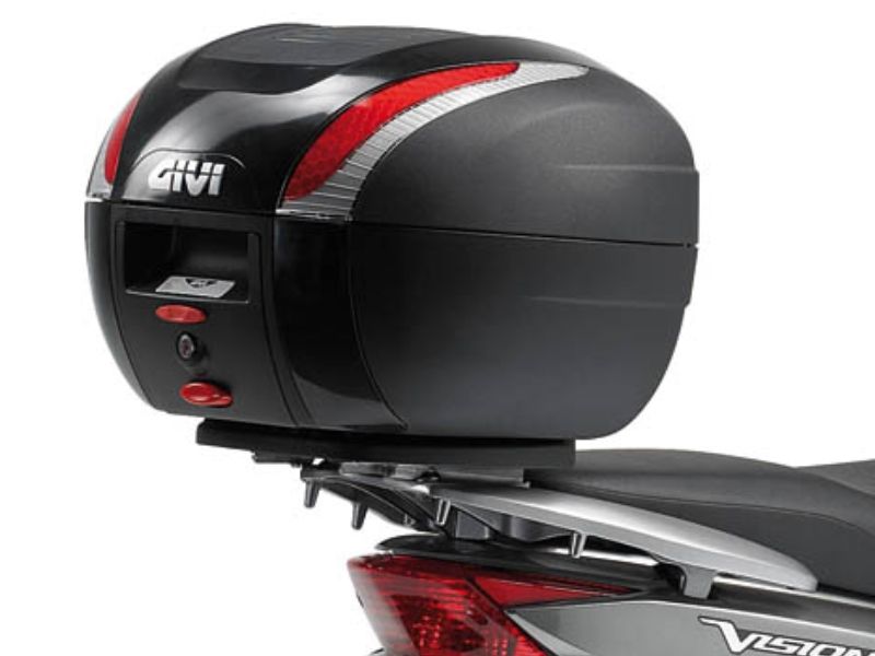 Soporte maleta trasera Givi SR1153 Honda Vision 50/125 2011/2017. Nuevo soporte de maleta adaptador posterior Givi SR1153 diseñado específicamente para la Honda Vision 50/125 y que permite la fijación de las maletas Givi con sistema Monolock. A combinar con la parrilla Monolock incluidas en los maletas.