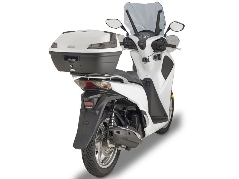 Soporte maleta trasera Givi SR1155 Honda SH 125i-150i 2017. Nuevo soporte de maleta adaptador posterior Givi SR1155 diseñado específicamente para la SH 125i-150i 2017 y que permite la fijación de las maletas Givi con sistema Monolock. El soporte Givi SR1155 está diseñado con avanzada tecnología para ofrecer la máxima solidez. A combinar con la parrilla Monolock incluida en la maleta.