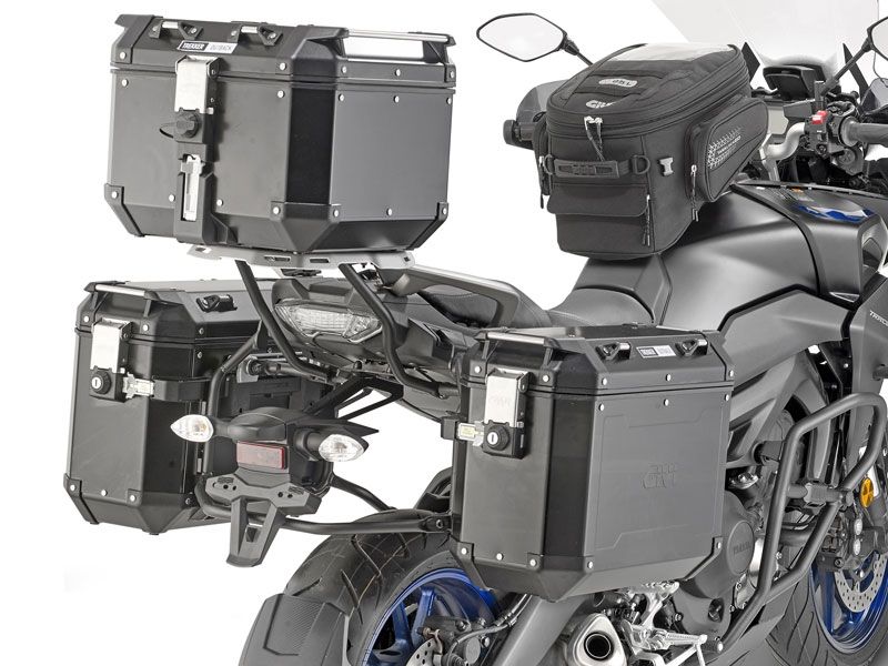 Soporte maleta trasera Givi SR2139 Yamaha Tracer 900 / Tracer 900 GT 2018. Nuevo soporte de maleta adaptador posterior Givi SR2139 diseñado específicamente para Tracer 900 / Tracer 900 GT 2018 y que permite la fijación de las maletas Givi con sistema Monolock. El soporte Givi SR2139 está diseñado con avanzada tecnología para ofrecer la máxima solidez. A combinar con la parrilla Monokey M5, M8A y M8B, el portabolsa de aluminio EX2M o las parrillas Monolock M5M y M6M. Las parrillas Monokey M8A, M8B no permiten la instalación de un kit de luz stop sobre la maleta y/o dispositivo de mando a distancia para la apertura de la maleta.