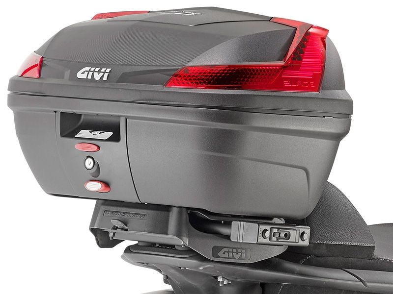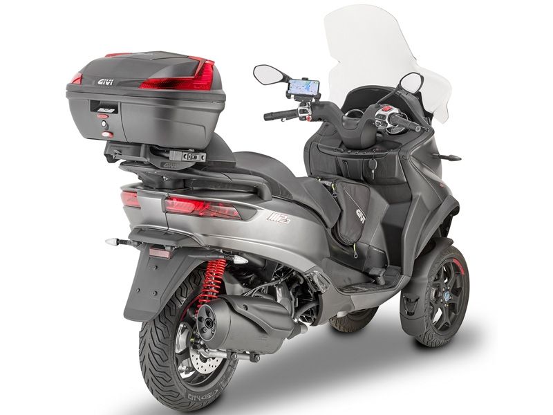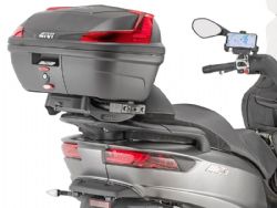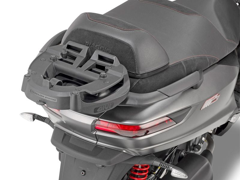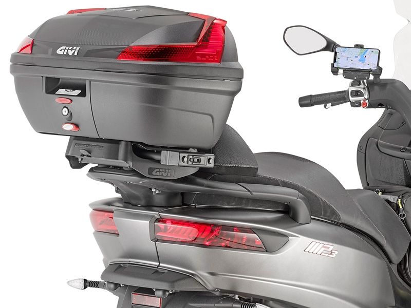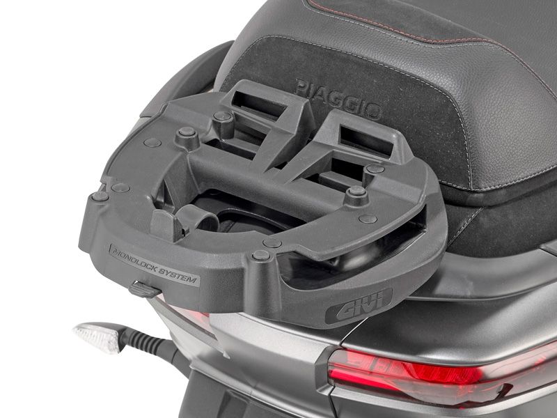 Soporte maleta trasera Givi SR5613 Piaggio MP3 350 / 500 Sport / Business 2018. Nuevo soporte de maleta adaptador posterior Givi SR5613 diseñado específicamente para Piaggio MP3 350–500 2018 y que permite la fijación de las maletas Givi con sistema Monolock. El soporte Givi SR5613 está diseñado con avanzada tecnología para ofrecer la máxima solidez. A combinar con la parrilla Monokey M5, M8A y M8B, el portabolsa de aluminio EX2M o las parrillas Monolock M5M y M6M. Las parrillas Monokey M8A, M8B no permiten la instalación de un kit de luz stop sobre la maleta y/o dispositivo de mando a distancia para la apertura de la maleta.
