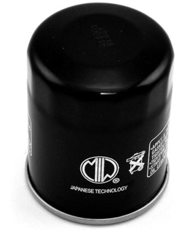 Filtro aceite Meiwa MIW 268621 Arctic Cat H1 650/700. Los filtros de aceite MIW (Meiwa) están desarrollados con los más altos estándares de calidad exigidos por las motocicletas y scooter de última generación. Fabricados con un papel microporoso impregnado de resina compuesto por un gran porcentaje de fibras de algodón, para ofrecer un filtrado de calidad y duración inigualable. Las fibras de algodón están compuestas por filamentos de diferentes espesores, más gruesos hacia las paredes externas del filtro, para capturar las partículas metálicas más grandes y más delgadas hacia adentro, para filtrar incluso las partículas más microscópicas. Este método, en la base de la "Filtración Multietapa", permite una elevada capacidad de filtrado del flujo de aceite, incluso después de una contaminación prolongada del filtro.