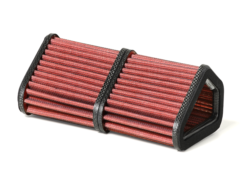 Filtro de potencia Bmc CRF482/08. Los filtros de aire Bmc Carbon Racing Filter garantizan un elevado de alto rendimiento en motos de carretera y de competición. Posee una estructura de soporte fabricada enteramente en tejido de fibra de carbono autoclave y preimpregnado junto con un elemento filtrante de algodón. El filtro de aire Bmc Carbon Racing Filter posee un avanzado diseño que permite utilizar el mayor volumen posible de la caja de aire de serie, lo cual también permite disponer de una mayor superficie de filtración y por tanto, una mayor entrada de flujo del aire al motor. El resultado es una mejor canalización del flujo de aire en la fase de admisión con una constante presión en la caja de aire. El elemento filtrante está realizado con un material filtrante especial de múltiples capas en la configuración RACE (de competición), impregnado con aceite de baja viscosidad y colocado entre mallas de aluminio tratadas con resinas epoxi (para evitar la oxidación). La configuración RACE proporciona elevados niveles de permeabilidad así como una mínima resistencia al flujo de aire para garantizar una gran eficiencia de filtración.