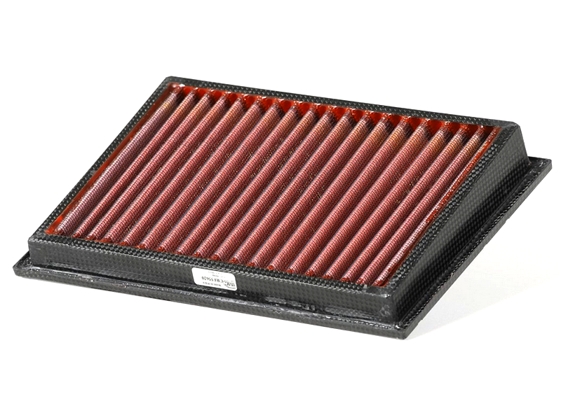 Filtro de potencia Bmc CRF556/20. Los filtros de aire Bmc Carbon Racing Filter garantizan un elevado de alto rendimiento en motos de carretera y de competición. Posee una estructura de soporte fabricada enteramente en tejido de fibra de carbono autoclave y preimpregnado junto con un elemento filtrante de algodón. El filtro de aire Bmc Carbon Racing Filter posee un avanzado diseño que permite utilizar el mayor volumen posible de la caja de aire de serie, lo cual también permite disponer de una mayor superficie de filtración y por tanto, una mayor entrada de flujo del aire al motor. El resultado es una mejor canalización del flujo de aire en la fase de admisión con una constante presión en la caja de aire. El elemento filtrante está realizado con un material filtrante especial de múltiples capas en la configuración RACE (de competición), impregnado con aceite de baja viscosidad y colocado entre mallas de aluminio tratadas con resinas epoxi (para evitar la oxidación). La configuración RACE proporciona elevados niveles de permeabilidad así como una mínima resistencia al flujo de aire para garantizar una gran eficiencia de filtración.