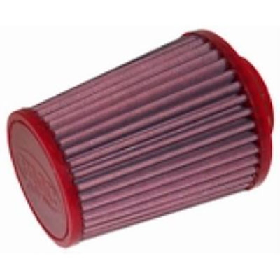 Filtro aire Bmc FBSS50-128 universal cónico Ø50mm x 128mm (Versión standard con menos entrada de aire). El filtro de aire Bmc Filter FBSS50-128 posee un diseño específico y está diseñado para colocar en sustitución al filtro de aire original. El filtro de potencia Bmc FBSS50-128 de alto rendimiento cuenta con la misma forma que el filtro standard, pero con una base de filtrado mayor. Este filtro reutilizable se caracteriza por su diseño que mejora notablemente la capacidad de aspiración de la toma de aire en comparación con los filtros tradicionales, mejorando también la calidad de la combustión. El filtro de potencia Bmc FBSS50-128 consta de una gasa de algodón de múltiples capas impregnada con aceite de baja viscosidad y recubierta con una malla de aluminio tratado con resina epoxy que garantiza la protección contra los humos del combustible y la oxidación debida a la humedad del aire. Las impurezas se filtran gracias al efecto pantalla y de retención, siendo capturadas por las fibras de algodón y retenidas por el aceite. Este proceso no obstruye la entrada de aire y garantiza el rendimiento constante del filtro de aire a largo plazo. El proceso de filtrado es continuo y los cuerpos extraños quedan depositados en el tejido sin bloquear el flujo de aire. El filtros Bmc está realizado mediante un sistema de “moldeado completo” que permite al característico filtro rojo ser de una sola pieza, sin juntas soldadas, lo cual evita la rotura. La goma que se utiliza en los sistemas de filtrado de aire Bmc es muy resistente y duradera, y posee unas características de adherencia óptimas para adaptarse a todas las formas de las cajas de aire.