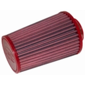 Filtro aire Bmc FBSS70-150 universal cónico Ø70mm x 150mm (Versión standard con menos entrada de aire). El filtro de aire Bmc Filter FBSS70-150 posee un diseño específico y está diseñado para colocar en sustitución al filtro de aire original. El filtro de potencia Bmc FBSS70-150 de alto rendimiento cuenta con la misma forma que el filtro standard, pero con una base de filtrado mayor. Este filtro reutilizable se caracteriza por su diseño que mejora notablemente la capacidad de aspiración de la toma de aire en comparación con los filtros tradicionales, mejorando también la calidad de la combustión. El filtro de potencia Bmc FBSS70-150 consta de una gasa de algodón de múltiples capas impregnada con aceite de baja viscosidad y recubierta con una malla de aluminio tratado con resina epoxy que garantiza la protección contra los humos del combustible y la oxidación debida a la humedad del aire. Las impurezas se filtran gracias al efecto pantalla y de retención, siendo capturadas por las fibras de algodón y retenidas por el aceite. Este proceso no obstruye la entrada de aire y garantiza el rendimiento constante del filtro de aire a largo plazo. El proceso de filtrado es continuo y los cuerpos extraños quedan depositados en el tejido sin bloquear el flujo de aire. El filtros Bmc está realizado mediante un sistema de “moldeado completo” que permite al característico filtro rojo ser de una sola pieza, sin juntas soldadas, lo cual evita la rotura. La goma que se utiliza en los sistemas de filtrado de aire Bmc es muy resistente y duradera, y posee unas características de adherencia óptimas para adaptarse a todas las formas de las cajas de aire.