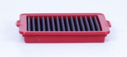 Filtro aire Bmc FM01004 BMW F750GS/850GS/F900R/XR (Versión standard con menos entrada de aire). El filtro de aire Bmc Filter FM01004 posee un diseño específico y está diseñado para colocar en sustitución al filtro de aire original. El filtro de potencia Bmc FM01004 de alto rendimiento cuenta con la misma forma que el filtro standard, pero con una base de filtrado mayor. Este filtro reutilizable se caracteriza por su diseño que mejora notablemente la capacidad de aspiración de la toma de aire en comparación con los filtros tradicionales, mejorando también la calidad de la combustión. El filtro de potencia Bmc FM01004 consta de una gasa de algodón de múltiples capas impregnada con aceite de baja viscosidad y recubierta con una malla de aluminio tratado con resina epoxy que garantiza la protección contra los humos del combustible y la oxidación debida a la humedad del aire. Las impurezas se filtran gracias al efecto pantalla y de retención, siendo capturadas por las fibras de algodón y retenidas por el aceite. Este proceso no obstruye la entrada de aire y garantiza el rendimiento constante del filtro de aire a largo plazo. El proceso de filtrado es continuo y los cuerpos extraños quedan depositados en el tejido sin bloquear el flujo de aire. El filtros Bmc está realizado mediante un sistema de “moldeado completo” que permite al característico filtro rojo ser de una sola pieza, sin juntas soldadas, lo cual evita la rotura. La goma que se utiliza en los sistemas de filtrado de aire Bmc es muy resistente y duradera, y posee unas características de adherencia óptimas para adaptarse a todas las formas de las cajas de aire.