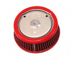 Filtro aire Bmc FM01065 (Versión standard con menos entrada de aire). El filtro de aire Bmc Filter FM01065 posee un diseño específico y está diseñado para colocar en sustitución al filtro de aire original. El filtro de potencia Bmc FM01065 de alto rendimiento cuenta con la misma forma que el filtro standard, pero con una base de filtrado mayor. Este filtro reutilizable se caracteriza por su diseño que mejora notablemente la capacidad de aspiración de la toma de aire en comparación con los filtros tradicionales, mejorando también la calidad de la combustión. El filtro de potencia Bmc FM01065 consta de una gasa de algodón de múltiples capas impregnada con aceite de baja viscosidad y recubierta con una malla de aluminio tratado con resina epoxy que garantiza la protección contra los humos del combustible y la oxidación debida a la humedad del aire. Las impurezas se filtran gracias al efecto pantalla y de retención, siendo capturadas por las fibras de algodón y retenidas por el aceite. Este proceso no obstruye la entrada de aire y garantiza el rendimiento constante del filtro de aire a largo plazo. El proceso de filtrado es continuo y los cuerpos extraños quedan depositados en el tejido sin bloquear el flujo de aire. El filtros Bmc está realizado mediante un sistema de “moldeado completo” que permite al característico filtro rojo ser de una sola pieza, sin juntas soldadas, lo cual evita la rotura. La goma que se utiliza en los sistemas de filtrado de aire Bmc es muy resistente y duradera, y posee unas características de adherencia óptimas para adaptarse a todas las formas de las cajas de aire.