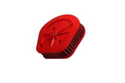 Filtro aire Bmc FM01083 Harley Davidson SOFTAIL FLDE DELUXE 18> (Versión standard con menos entrada de aire). El filtro de aire Bmc Filter FM01083 posee un diseño específico y está diseñado para colocar en sustitución al filtro de aire original. El filtro de potencia Bmc FM01083 de alto rendimiento cuenta con la misma forma que el filtro standard, pero con una base de filtrado mayor. Este filtro reutilizable se caracteriza por su diseño que mejora notablemente la capacidad de aspiración de la toma de aire en comparación con los filtros tradicionales, mejorando también la calidad de la combustión. El filtro de potencia Bmc FM01083 consta de una gasa de algodón de múltiples capas impregnada con aceite de baja viscosidad y recubierta con una malla de aluminio tratado con resina epoxy que garantiza la protección contra los humos del combustible y la oxidación debida a la humedad del aire. Las impurezas se filtran gracias al efecto pantalla y de retención, siendo capturadas por las fibras de algodón y retenidas por el aceite. Este proceso no obstruye la entrada de aire y garantiza el rendimiento constante del filtro de aire a largo plazo. El proceso de filtrado es continuo y los cuerpos extraños quedan depositados en el tejido sin bloquear el flujo de aire. El filtros Bmc está realizado mediante un sistema de “moldeado completo” que permite al característico filtro rojo ser de una sola pieza, sin juntas soldadas, lo cual evita la rotura. La goma que se utiliza en los sistemas de filtrado de aire Bmc es muy resistente y duradera, y posee unas características de adherencia óptimas para adaptarse a todas las formas de las cajas de aire.