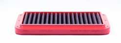 Filtro aire Bmc FM01095 (Versión standard con menos entrada de aire). El filtro de aire Bmc Filter FM01095 posee un diseño específico y está diseñado para colocar en sustitución al filtro de aire original. El filtro de potencia Bmc FM01095 de alto rendimiento cuenta con la misma forma que el filtro standard, pero con una base de filtrado mayor. Este filtro reutilizable se caracteriza por su diseño que mejora notablemente la capacidad de aspiración de la toma de aire en comparación con los filtros tradicionales, mejorando también la calidad de la combustión. El filtro de potencia Bmc FM01095 consta de una gasa de algodón de múltiples capas impregnada con aceite de baja viscosidad y recubierta con una malla de aluminio tratado con resina epoxy que garantiza la protección contra los humos del combustible y la oxidación debida a la humedad del aire. Las impurezas se filtran gracias al efecto pantalla y de retención, siendo capturadas por las fibras de algodón y retenidas por el aceite. Este proceso no obstruye la entrada de aire y garantiza el rendimiento constante del filtro de aire a largo plazo. El proceso de filtrado es continuo y los cuerpos extraños quedan depositados en el tejido sin bloquear el flujo de aire. El filtros Bmc está realizado mediante un sistema de “moldeado completo” que permite al característico filtro rojo ser de una sola pieza, sin juntas soldadas, lo cual evita la rotura. La goma que se utiliza en los sistemas de filtrado de aire Bmc es muy resistente y duradera, y posee unas características de adherencia óptimas para adaptarse a todas las formas de las cajas de aire.