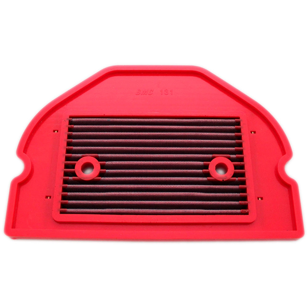 Filtro aire Bmc FM131/04 (Versión standard con menos entrada de aire). El filtro de aire Bmc Filter FM131/04 posee un diseño específico y está diseñado para colocar en sustitución al filtro de aire original. El filtro de potencia Bmc FM131/04 de alto rendimiento cuenta con la misma forma que el filtro standard, pero con una base de filtrado mayor. Este filtro reutilizable se caracteriza por su diseño que mejora notablemente la capacidad de aspiración de la toma de aire en comparación con los filtros tradicionales, mejorando también la calidad de la combustión. El filtro de potencia Bmc FM131/04 consta de una gasa de algodón de múltiples capas impregnada con aceite de baja viscosidad y recubierta con una malla de aluminio tratado con resina epoxy que garantiza la protección contra los humos del combustible y la oxidación debida a la humedad del aire. Las impurezas se filtran gracias al efecto pantalla y de retención, siendo capturadas por las fibras de algodón y retenidas por el aceite. Este proceso no obstruye la entrada de aire y garantiza el rendimiento constante del filtro de aire a largo plazo. El proceso de filtrado es continuo y los cuerpos extraños quedan depositados en el tejido sin bloquear el flujo de aire. El filtros Bmc está realizado mediante un sistema de “moldeado completo” que permite al característico filtro rojo ser de una sola pieza, sin juntas soldadas, lo cual evita la rotura. La goma que se utiliza en los sistemas de filtrado de aire Bmc es muy resistente y duradera, y posee unas características de adherencia óptimas para adaptarse a todas las formas de las cajas de aire.