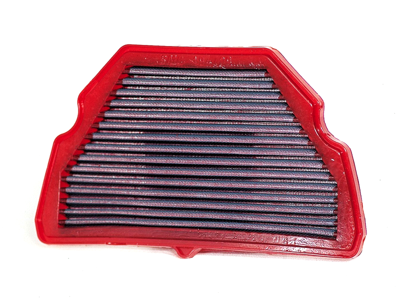 Filtro de potencia Bmc FM194/09 (Versión standard con menos entrada de aire). El filtro de aire Bmc Filter FM194/09 posee un diseño específico y está diseñado para colocar en sustitución al filtro de aire original. El filtro de potencia Bmc FM194/09 de alto rendimiento cuenta con la misma forma que el filtro standard, pero con una base de filtrado mayor. Este filtro reutilizable se caracteriza por su diseño que mejora notablemente la capacidad de aspiración de la toma de aire en comparación con los filtros tradicionales, mejorando también la calidad de la combustión. El filtro de potencia Bmc FM194/09 consta de una gasa de algodón de múltiples capas impregnada con aceite de baja viscosidad y recubierta con una malla de aluminio tratado con resina epoxy que garantiza la protección contra los humos del combustible y la oxidación debida a la humedad del aire. Las impurezas se filtran gracias al efecto pantalla y de retención, siendo capturadas por las fibras de algodón y retenidas por el aceite. Este proceso no obstruye la entrada de aire y garantiza el rendimiento constante del filtro de aire a largo plazo. El proceso de filtrado es continuo y los cuerpos extraños quedan depositados en el tejido sin bloquear el flujo de aire. El filtros Bmc está realizado mediante un sistema de “moldeado completo” que permite al característico filtro rojo ser de una sola pieza, sin juntas soldadas, lo cual evita la rotura. La goma que se utiliza en los sistemas de filtrado de aire Bmc es muy resistente y duradera, y posee unas características de adherencia óptimas para adaptarse a todas las formas de las cajas de aire.