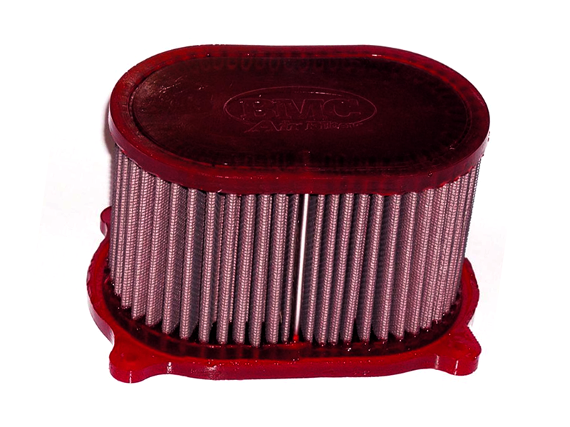 Filtro de potencia Bmc FM205/10 (Versión standard con menos entrada de aire). El filtro de aire Bmc Filter FM205/10 posee un diseño específico y está diseñado para colocar en sustitución al filtro de aire original. El filtro de potencia Bmc FM205/10 de alto rendimiento cuenta con la misma forma que el filtro standard, pero con una base de filtrado mayor. Este filtro reutilizable se caracteriza por su diseño que mejora notablemente la capacidad de aspiración de la toma de aire en comparación con los filtros tradicionales, mejorando también la calidad de la combustión. El filtro de potencia Bmc FM205/10 consta de una gasa de algodón de múltiples capas impregnada con aceite de baja viscosidad y recubierta con una malla de aluminio tratado con resina epoxy que garantiza la protección contra los humos del combustible y la oxidación debida a la humedad del aire. Las impurezas se filtran gracias al efecto pantalla y de retención, siendo capturadas por las fibras de algodón y retenidas por el aceite. Este proceso no obstruye la entrada de aire y garantiza el rendimiento constante del filtro de aire a largo plazo. El proceso de filtrado es continuo y los cuerpos extraños quedan depositados en el tejido sin bloquear el flujo de aire. El filtros Bmc está realizado mediante un sistema de “moldeado completo” que permite al característico filtro rojo ser de una sola pieza, sin juntas soldadas, lo cual evita la rotura. La goma que se utiliza en los sistemas de filtrado de aire Bmc es muy resistente y duradera, y posee unas características de adherencia óptimas para adaptarse a todas las formas de las cajas de aire.