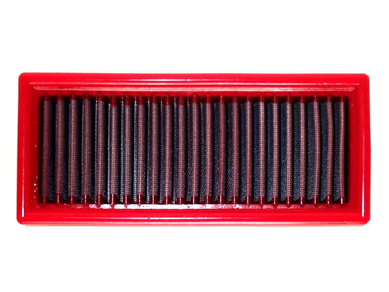 Filtro de potencia Bmc FM242/01 (Versión standard con menos entrada de aire). El filtro de aire Bmc Filter FM242/01 posee un diseño específico y está diseñado para colocar en sustitución al filtro de aire original. El filtro de potencia Bmc FM242/01 de alto rendimiento cuenta con la misma forma que el filtro standard, pero con una base de filtrado mayor. Este filtro reutilizable se caracteriza por su diseño que mejora notablemente la capacidad de aspiración de la toma de aire en comparación con los filtros tradicionales, mejorando también la calidad de la combustión. El filtro de potencia Bmc FM242/01 consta de una gasa de algodón de múltiples capas impregnada con aceite de baja viscosidad y recubierta con una malla de aluminio tratado con resina epoxy que garantiza la protección contra los humos del combustible y la oxidación debida a la humedad del aire. Las impurezas se filtran gracias al efecto pantalla y de retención, siendo capturadas por las fibras de algodón y retenidas por el aceite. Este proceso no obstruye la entrada de aire y garantiza el rendimiento constante del filtro de aire a largo plazo. El proceso de filtrado es continuo y los cuerpos extraños quedan depositados en el tejido sin bloquear el flujo de aire. El filtros Bmc está realizado mediante un sistema de “moldeado completo” que permite al característico filtro rojo ser de una sola pieza, sin juntas soldadas, lo cual evita la rotura. La goma que se utiliza en los sistemas de filtrado de aire Bmc es muy resistente y duradera, y posee unas características de adherencia óptimas para adaptarse a todas las formas de las cajas de aire.