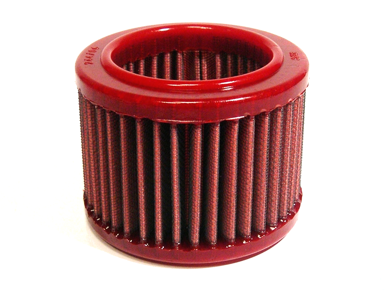 Filtro de potencia Bmc FM244/06 (Versión standard con menos entrada de aire). El filtro de aire Bmc Filter FM244/06 posee un diseño específico y está diseñado para colocar en sustitución al filtro de aire original. El filtro de potencia Bmc FM244/06 de alto rendimiento cuenta con la misma forma que el filtro standard, pero con una base de filtrado mayor. Este filtro reutilizable se caracteriza por su diseño que mejora notablemente la capacidad de aspiración de la toma de aire en comparación con los filtros tradicionales, mejorando también la calidad de la combustión. El filtro de potencia Bmc FM244/06 consta de una gasa de algodón de múltiples capas impregnada con aceite de baja viscosidad y recubierta con una malla de aluminio tratado con resina epoxy que garantiza la protección contra los humos del combustible y la oxidación debida a la humedad del aire. Las impurezas se filtran gracias al efecto pantalla y de retención, siendo capturadas por las fibras de algodón y retenidas por el aceite. Este proceso no obstruye la entrada de aire y garantiza el rendimiento constante del filtro de aire a largo plazo. El proceso de filtrado es continuo y los cuerpos extraños quedan depositados en el tejido sin bloquear el flujo de aire. El filtros Bmc está realizado mediante un sistema de “moldeado completo” que permite al característico filtro rojo ser de una sola pieza, sin juntas soldadas, lo cual evita la rotura. La goma que se utiliza en los sistemas de filtrado de aire Bmc es muy resistente y duradera, y posee unas características de adherencia óptimas para adaptarse a todas las formas de las cajas de aire.