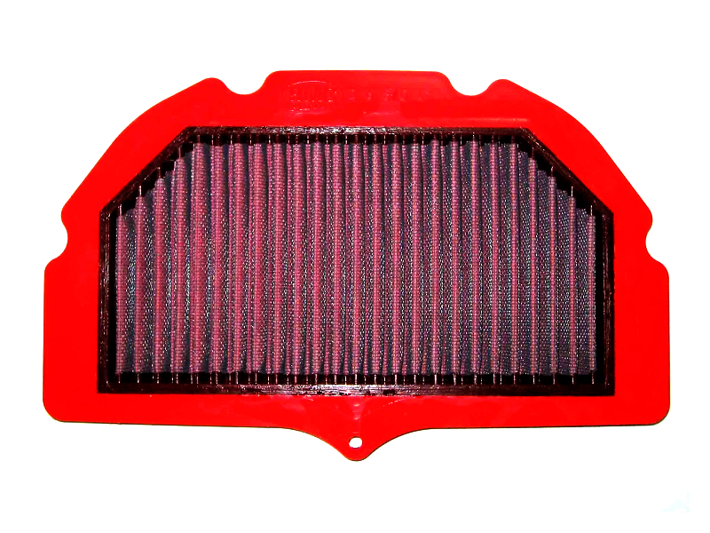 Filtro de potencia Bmc FM268/04 (Versión standard con menos entrada de aire). El filtro de aire Bmc Filter FM268/04 posee un diseño específico y está diseñado para colocar en sustitución al filtro de aire original. El filtro de potencia Bmc FM268/04 de alto rendimiento cuenta con la misma forma que el filtro standard, pero con una base de filtrado mayor. Este filtro reutilizable se caracteriza por su diseño que mejora notablemente la capacidad de aspiración de la toma de aire en comparación con los filtros tradicionales, mejorando también la calidad de la combustión. El filtro de potencia Bmc FM268/04 consta de una gasa de algodón de múltiples capas impregnada con aceite de baja viscosidad y recubierta con una malla de aluminio tratado con resina epoxy que garantiza la protección contra los humos del combustible y la oxidación debida a la humedad del aire. Las impurezas se filtran gracias al efecto pantalla y de retención, siendo capturadas por las fibras de algodón y retenidas por el aceite. Este proceso no obstruye la entrada de aire y garantiza el rendimiento constante del filtro de aire a largo plazo. El proceso de filtrado es continuo y los cuerpos extraños quedan depositados en el tejido sin bloquear el flujo de aire. El filtros Bmc está realizado mediante un sistema de “moldeado completo” que permite al característico filtro rojo ser de una sola pieza, sin juntas soldadas, lo cual evita la rotura. La goma que se utiliza en los sistemas de filtrado de aire Bmc es muy resistente y duradera, y posee unas características de adherencia óptimas para adaptarse a todas las formas de las cajas de aire.