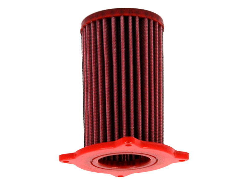 Filtro de potencia Bmc FM304/10 (Versión standard con menos entrada de aire). El filtro de aire Bmc Filter FM304/10 posee un diseño específico y está diseñado para colocar en sustitución al filtro de aire original. El filtro de potencia Bmc FM304/10 de alto rendimiento cuenta con la misma forma que el filtro standard, pero con una base de filtrado mayor. Este filtro reutilizable se caracteriza por su diseño que mejora notablemente la capacidad de aspiración de la toma de aire en comparación con los filtros tradicionales, mejorando también la calidad de la combustión. El filtro de potencia Bmc FM304/10 consta de una gasa de algodón de múltiples capas impregnada con aceite de baja viscosidad y recubierta con una malla de aluminio tratado con resina epoxy que garantiza la protección contra los humos del combustible y la oxidación debida a la humedad del aire. Las impurezas se filtran gracias al efecto pantalla y de retención, siendo capturadas por las fibras de algodón y retenidas por el aceite. Este proceso no obstruye la entrada de aire y garantiza el rendimiento constante del filtro de aire a largo plazo. El proceso de filtrado es continuo y los cuerpos extraños quedan depositados en el tejido sin bloquear el flujo de aire. El filtros Bmc está realizado mediante un sistema de “moldeado completo” que permite al característico filtro rojo ser de una sola pieza, sin juntas soldadas, lo cual evita la rotura. La goma que se utiliza en los sistemas de filtrado de aire Bmc es muy resistente y duradera, y posee unas características de adherencia óptimas para adaptarse a todas las formas de las cajas de aire.