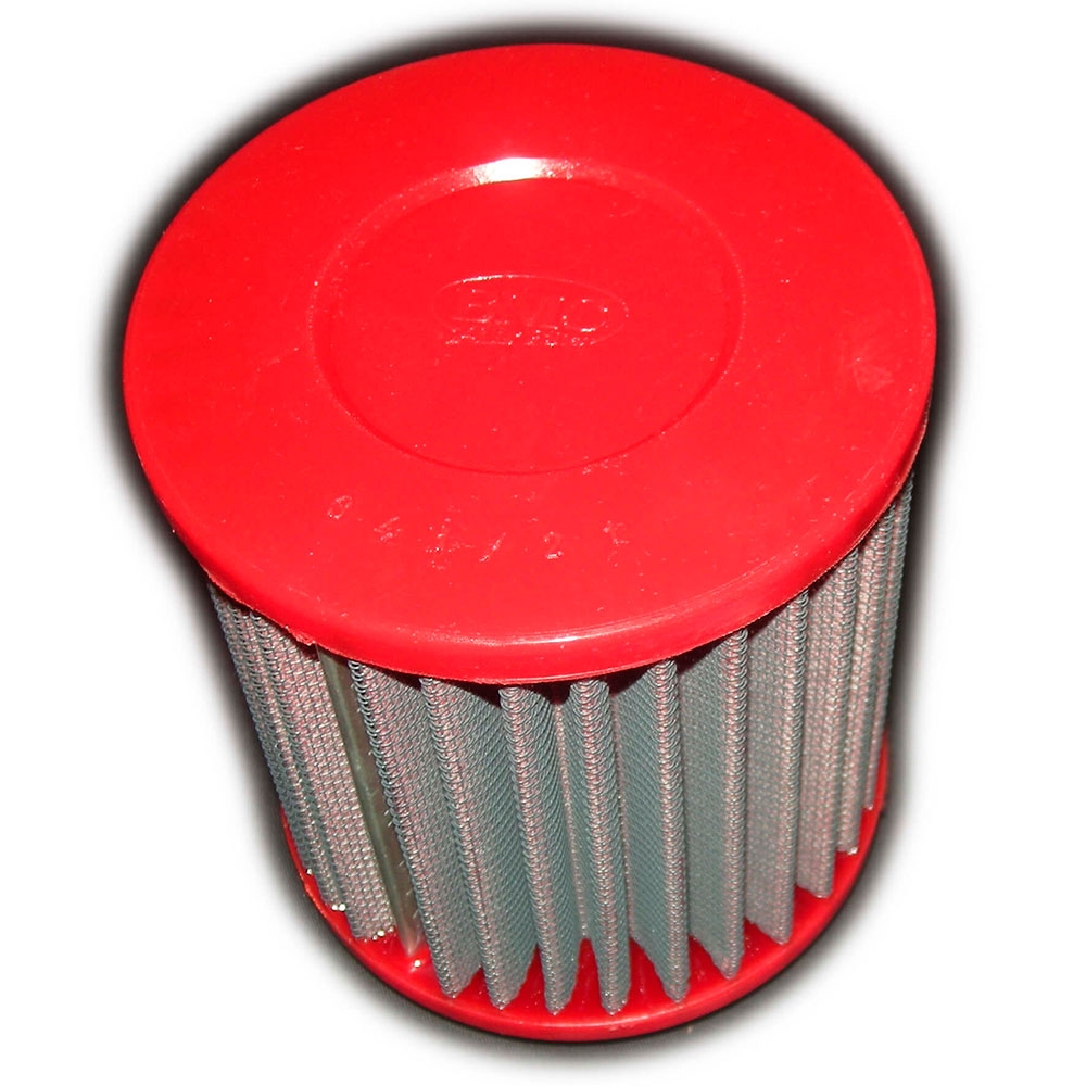 Filtro aire Bmc FM341/21 (Versión standard con menos entrada de aire). El filtro de aire Bmc Filter FM341/21 posee un diseño específico y está diseñado para colocar en sustitución al filtro de aire original. El filtro de potencia Bmc FM341/21 de alto rendimiento cuenta con la misma forma que el filtro standard, pero con una base de filtrado mayor. Este filtro reutilizable se caracteriza por su diseño que mejora notablemente la capacidad de aspiración de la toma de aire en comparación con los filtros tradicionales, mejorando también la calidad de la combustión. El filtro de potencia Bmc FM341/21 consta de una gasa de algodón de múltiples capas impregnada con aceite de baja viscosidad y recubierta con una malla de aluminio tratado con resina epoxy que garantiza la protección contra los humos del combustible y la oxidación debida a la humedad del aire. Las impurezas se filtran gracias al efecto pantalla y de retención, siendo capturadas por las fibras de algodón y retenidas por el aceite. Este proceso no obstruye la entrada de aire y garantiza el rendimiento constante del filtro de aire a largo plazo. El proceso de filtrado es continuo y los cuerpos extraños quedan depositados en el tejido sin bloquear el flujo de aire. El filtros Bmc está realizado mediante un sistema de “moldeado completo” que permite al característico filtro rojo ser de una sola pieza, sin juntas soldadas, lo cual evita la rotura. La goma que se utiliza en los sistemas de filtrado de aire Bmc es muy resistente y duradera, y posee unas características de adherencia óptimas para adaptarse a todas las formas de las cajas de aire.
