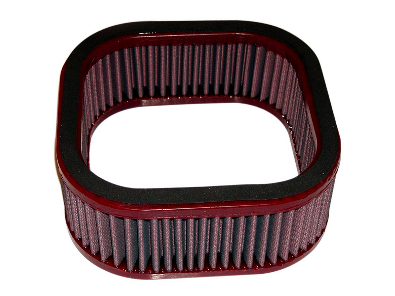 Filtro de potencia Bmc FM361/06 (Versión standard con menos entrada de aire). El filtro de aire Bmc Filter FM361/06 posee un diseño específico y está diseñado para colocar en sustitución al filtro de aire original. El filtro de potencia Bmc FM361/06 de alto rendimiento cuenta con la misma forma que el filtro standard, pero con una base de filtrado mayor. Este filtro reutilizable se caracteriza por su diseño que mejora notablemente la capacidad de aspiración de la toma de aire en comparación con los filtros tradicionales, mejorando también la calidad de la combustión. El filtro de potencia Bmc FM361/06 consta de una gasa de algodón de múltiples capas impregnada con aceite de baja viscosidad y recubierta con una malla de aluminio tratado con resina epoxy que garantiza la protección contra los humos del combustible y la oxidación debida a la humedad del aire. Las impurezas se filtran gracias al efecto pantalla y de retención, siendo capturadas por las fibras de algodón y retenidas por el aceite. Este proceso no obstruye la entrada de aire y garantiza el rendimiento constante del filtro de aire a largo plazo. El proceso de filtrado es continuo y los cuerpos extraños quedan depositados en el tejido sin bloquear el flujo de aire. El filtros Bmc está realizado mediante un sistema de “moldeado completo” que permite al característico filtro rojo ser de una sola pieza, sin juntas soldadas, lo cual evita la rotura. La goma que se utiliza en los sistemas de filtrado de aire Bmc es muy resistente y duradera, y posee unas características de adherencia óptimas para adaptarse a todas las formas de las cajas de aire.