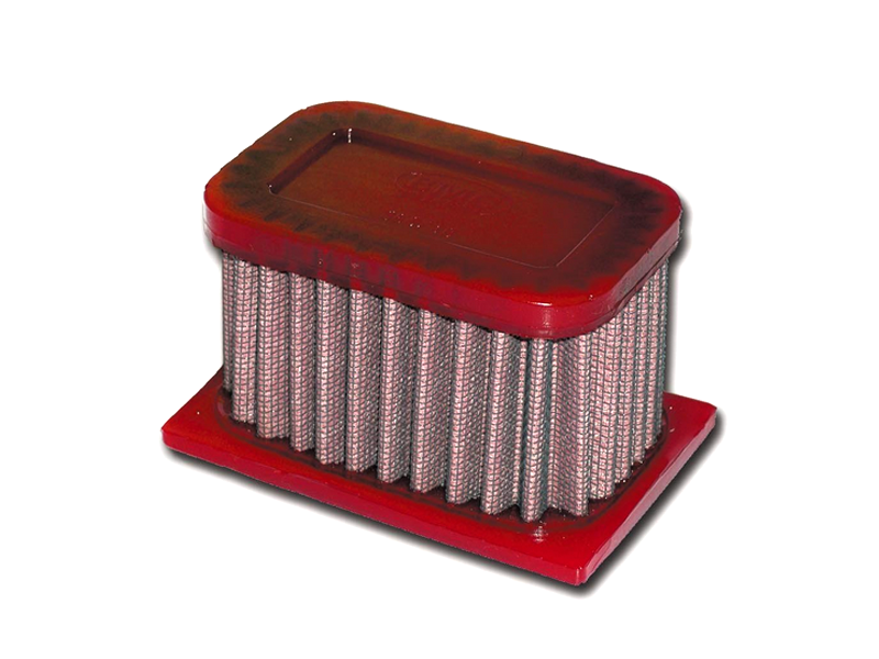 Filtro de potencia Bmc FM363/10 (Versión standard con menos entrada de aire). El filtro de aire Bmc Filter FM363/10 posee un diseño específico y está diseñado para colocar en sustitución al filtro de aire original. El filtro de potencia Bmc FM363/10 de alto rendimiento cuenta con la misma forma que el filtro standard, pero con una base de filtrado mayor. Este filtro reutilizable se caracteriza por su diseño que mejora notablemente la capacidad de aspiración de la toma de aire en comparación con los filtros tradicionales, mejorando también la calidad de la combustión. El filtro de potencia Bmc FM363/10 consta de una gasa de algodón de múltiples capas impregnada con aceite de baja viscosidad y recubierta con una malla de aluminio tratado con resina epoxy que garantiza la protección contra los humos del combustible y la oxidación debida a la humedad del aire. Las impurezas se filtran gracias al efecto pantalla y de retención, siendo capturadas por las fibras de algodón y retenidas por el aceite. Este proceso no obstruye la entrada de aire y garantiza el rendimiento constante del filtro de aire a largo plazo. El proceso de filtrado es continuo y los cuerpos extraños quedan depositados en el tejido sin bloquear el flujo de aire. El filtros Bmc está realizado mediante un sistema de “moldeado completo” que permite al característico filtro rojo ser de una sola pieza, sin juntas soldadas, lo cual evita la rotura. La goma que se utiliza en los sistemas de filtrado de aire Bmc es muy resistente y duradera, y posee unas características de adherencia óptimas para adaptarse a todas las formas de las cajas de aire.
