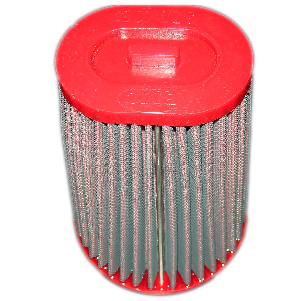 Filtro aire Bmc FM370/08 (Versión standard con menos entrada de aire). El filtro de aire Bmc Filter FM370/08 posee un diseño específico y está diseñado para colocar en sustitución al filtro de aire original. El filtro de potencia Bmc FM370/08 de alto rendimiento cuenta con la misma forma que el filtro standard, pero con una base de filtrado mayor. Este filtro reutilizable se caracteriza por su diseño que mejora notablemente la capacidad de aspiración de la toma de aire en comparación con los filtros tradicionales, mejorando también la calidad de la combustión. El filtro de potencia Bmc FM370/08 consta de una gasa de algodón de múltiples capas impregnada con aceite de baja viscosidad y recubierta con una malla de aluminio tratado con resina epoxy que garantiza la protección contra los humos del combustible y la oxidación debida a la humedad del aire. Las impurezas se filtran gracias al efecto pantalla y de retención, siendo capturadas por las fibras de algodón y retenidas por el aceite. Este proceso no obstruye la entrada de aire y garantiza el rendimiento constante del filtro de aire a largo plazo. El proceso de filtrado es continuo y los cuerpos extraños quedan depositados en el tejido sin bloquear el flujo de aire. El filtros Bmc está realizado mediante un sistema de “moldeado completo” que permite al característico filtro rojo ser de una sola pieza, sin juntas soldadas, lo cual evita la rotura. La goma que se utiliza en los sistemas de filtrado de aire Bmc es muy resistente y duradera, y posee unas características de adherencia óptimas para adaptarse a todas las formas de las cajas de aire.