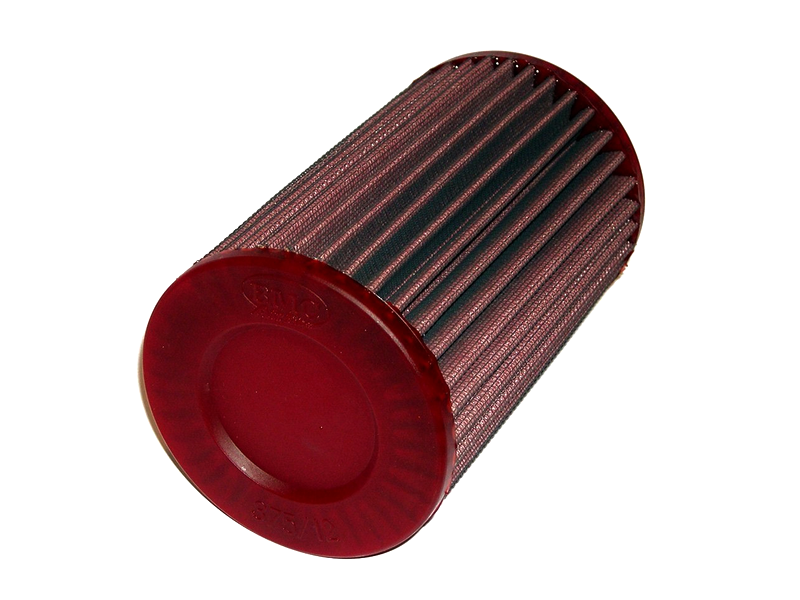 Filtro de potencia Bmc FM375/12 (Versión standard con menos entrada de aire). El filtro de aire Bmc Filter FM375/12 posee un diseño específico y está diseñado para colocar en sustitución al filtro de aire original. El filtro de potencia Bmc FM375/12 de alto rendimiento cuenta con la misma forma que el filtro standard, pero con una base de filtrado mayor. Este filtro reutilizable se caracteriza por su diseño que mejora notablemente la capacidad de aspiración de la toma de aire en comparación con los filtros tradicionales, mejorando también la calidad de la combustión. El filtro de potencia Bmc FM375/12 consta de una gasa de algodón de múltiples capas impregnada con aceite de baja viscosidad y recubierta con una malla de aluminio tratado con resina epoxy que garantiza la protección contra los humos del combustible y la oxidación debida a la humedad del aire. Las impurezas se filtran gracias al efecto pantalla y de retención, siendo capturadas por las fibras de algodón y retenidas por el aceite. Este proceso no obstruye la entrada de aire y garantiza el rendimiento constante del filtro de aire a largo plazo. El proceso de filtrado es continuo y los cuerpos extraños quedan depositados en el tejido sin bloquear el flujo de aire. El filtros Bmc está realizado mediante un sistema de “moldeado completo” que permite al característico filtro rojo ser de una sola pieza, sin juntas soldadas, lo cual evita la rotura. La goma que se utiliza en los sistemas de filtrado de aire Bmc es muy resistente y duradera, y posee unas características de adherencia óptimas para adaptarse a todas las formas de las cajas de aire.