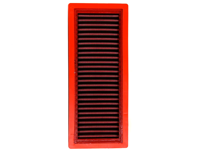 Filtro de potencia Bmc FM415/04RACE Kawasaki ZX 6RR 2005-2006 (Versión Race con más entrada de aire). El filtro de aire Bmc Filter FM415/04RACE posee un diseño específico y está diseñado para colocar en sustitución al filtro de aire original. El filtro de potencia Bmc FM415/04RACE de alto rendimiento cuenta con la misma forma que el filtro standard, pero con una base de filtrado mayor incluso que los filtros Bmc standard). Este filtro de carreras reutilizable se caracteriza por su diseño que mejora notablemente la capacidad de aspiración de la toma de aire en comparación con los filtros tradicionales, mejorando también la calidad de la combustión. El filtro de potencia Bmc FM415/04RACE consta de una gasa de algodón de múltiples capas impregnada con aceite de baja viscosidad y recubierta con una malla de aluminio tratado con resina epoxy que garantiza la protección contra los humos del combustible y la oxidación debida a la humedad del aire. Las impurezas se filtran gracias al efecto pantalla y de retención, siendo capturadas por las fibras de algodón y retenidas por el aceite. Este proceso no obstruye la entrada de aire y garantiza el rendimiento constante del filtro de aire a largo plazo. El proceso de filtrado es continuo y los cuerpos extraños quedan depositados en el tejido sin bloquear el flujo de aire. El filtros Bmc está realizado mediante un sistema de “moldeado completo” que permite al característico filtro rojo ser de una sola pieza, sin juntas soldadas, lo cual evita la rotura. La goma que se utiliza en los sistemas de filtrado de aire Bmc es muy resistente y duradera, y posee unas características de adherencia óptimas para adaptarse a todas las formas de las cajas de aire.
