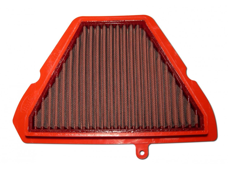 Filtro de potencia Bmc FM425/04 (Versión standard con menos entrada de aire). El filtro de aire Bmc Filter FM425/04 posee un diseño específico y está diseñado para colocar en sustitución al filtro de aire original. El filtro de potencia Bmc FM425/04 de alto rendimiento cuenta con la misma forma que el filtro standard, pero con una base de filtrado mayor. Este filtro reutilizable se caracteriza por su diseño que mejora notablemente la capacidad de aspiración de la toma de aire en comparación con los filtros tradicionales, mejorando también la calidad de la combustión. El filtro de potencia Bmc FM425/04 consta de una gasa de algodón de múltiples capas impregnada con aceite de baja viscosidad y recubierta con una malla de aluminio tratado con resina epoxy que garantiza la protección contra los humos del combustible y la oxidación debida a la humedad del aire. Las impurezas se filtran gracias al efecto pantalla y de retención, siendo capturadas por las fibras de algodón y retenidas por el aceite. Este proceso no obstruye la entrada de aire y garantiza el rendimiento constante del filtro de aire a largo plazo. El proceso de filtrado es continuo y los cuerpos extraños quedan depositados en el tejido sin bloquear el flujo de aire. El filtros Bmc está realizado mediante un sistema de “moldeado completo” que permite al característico filtro rojo ser de una sola pieza, sin juntas soldadas, lo cual evita la rotura. La goma que se utiliza en los sistemas de filtrado de aire Bmc es muy resistente y duradera, y posee unas características de adherencia óptimas para adaptarse a todas las formas de las cajas de aire.