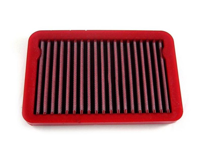 Filtro de potencia Bmc FM563/08RACE Aprilia RSV4 1000 2009 (Versión Race con más entrada de aire). El filtro de aire Bmc Filter FM563/08RACE posee un diseño específico y está diseñado para colocar en sustitución al filtro de aire original. El filtro de potencia Bmc FM563/08RACE de alto rendimiento cuenta con la misma forma que el filtro standard, pero con una base de filtrado mayor incluso que los filtros Bmc standard). Este filtro de carreras reutilizable se caracteriza por su diseño que mejora notablemente la capacidad de aspiración de la toma de aire en comparación con los filtros tradicionales, mejorando también la calidad de la combustión. El filtro de potencia Bmc FM563/08RACE consta de una gasa de algodón de múltiples capas impregnada con aceite de baja viscosidad y recubierta con una malla de aluminio tratado con resina epoxy que garantiza la protección contra los humos del combustible y la oxidación debida a la humedad del aire. Las impurezas se filtran gracias al efecto pantalla y de retención, siendo capturadas por las fibras de algodón y retenidas por el aceite. Este proceso no obstruye la entrada de aire y garantiza el rendimiento constante del filtro de aire a largo plazo. El proceso de filtrado es continuo y los cuerpos extraños quedan depositados en el tejido sin bloquear el flujo de aire. El filtros Bmc está realizado mediante un sistema de “moldeado completo” que permite al característico filtro rojo ser de una sola pieza, sin juntas soldadas, lo cual evita la rotura. La goma que se utiliza en los sistemas de filtrado de aire Bmc es muy resistente y duradera, y posee unas características de adherencia óptimas para adaptarse a todas las formas de las cajas de aire.