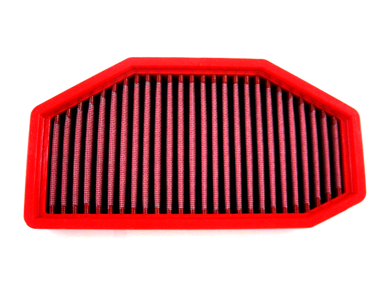 Filtro de potencia Bmc FM631/20 (Versión standard con menos entrada de aire). El filtro de aire Bmc Filter FM631/20 posee un diseño específico y está diseñado para colocar en sustitución al filtro de aire original. El filtro de potencia Bmc FM631/20 de alto rendimiento cuenta con la misma forma que el filtro standard, pero con una base de filtrado mayor. Este filtro reutilizable se caracteriza por su diseño que mejora notablemente la capacidad de aspiración de la toma de aire en comparación con los filtros tradicionales, mejorando también la calidad de la combustión. El filtro de potencia Bmc FM631/20 consta de una gasa de algodón de múltiples capas impregnada con aceite de baja viscosidad y recubierta con una malla de aluminio tratado con resina epoxy que garantiza la protección contra los humos del combustible y la oxidación debida a la humedad del aire. Las impurezas se filtran gracias al efecto pantalla y de retención, siendo capturadas por las fibras de algodón y retenidas por el aceite. Este proceso no obstruye la entrada de aire y garantiza el rendimiento constante del filtro de aire a largo plazo. El proceso de filtrado es continuo y los cuerpos extraños quedan depositados en el tejido sin bloquear el flujo de aire. El filtros Bmc está realizado mediante un sistema de “moldeado completo” que permite al característico filtro rojo ser de una sola pieza, sin juntas soldadas, lo cual evita la rotura. La goma que se utiliza en los sistemas de filtrado de aire Bmc es muy resistente y duradera, y posee unas características de adherencia óptimas para adaptarse a todas las formas de las cajas de aire.