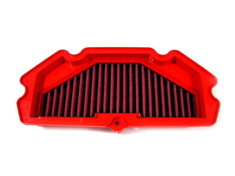 Filtro de potencia Bmc FM707/04 (Versión standard con menos entrada de aire). El filtro de aire Bmc Filter FM707/04 posee un diseño específico y está diseñado para colocar en sustitución al filtro de aire original. El filtro de potencia Bmc FM707/04 de alto rendimiento cuenta con la misma forma que el filtro standard, pero con una base de filtrado mayor. Este filtro reutilizable se caracteriza por su diseño que mejora notablemente la capacidad de aspiración de la toma de aire en comparación con los filtros tradicionales, mejorando también la calidad de la combustión. El filtro de potencia Bmc FM707/04 consta de una gasa de algodón de múltiples capas impregnada con aceite de baja viscosidad y recubierta con una malla de aluminio tratado con resina epoxy que garantiza la protección contra los humos del combustible y la oxidación debida a la humedad del aire. Las impurezas se filtran gracias al efecto pantalla y de retención, siendo capturadas por las fibras de algodón y retenidas por el aceite. Este proceso no obstruye la entrada de aire y garantiza el rendimiento constante del filtro de aire a largo plazo. El proceso de filtrado es continuo y los cuerpos extraños quedan depositados en el tejido sin bloquear el flujo de aire. El filtros Bmc está realizado mediante un sistema de “moldeado completo” que permite al característico filtro rojo ser de una sola pieza, sin juntas soldadas, lo cual evita la rotura. La goma que se utiliza en los sistemas de filtrado de aire Bmc es muy resistente y duradera, y posee unas características de adherencia óptimas para adaptarse a todas las formas de las cajas de aire.