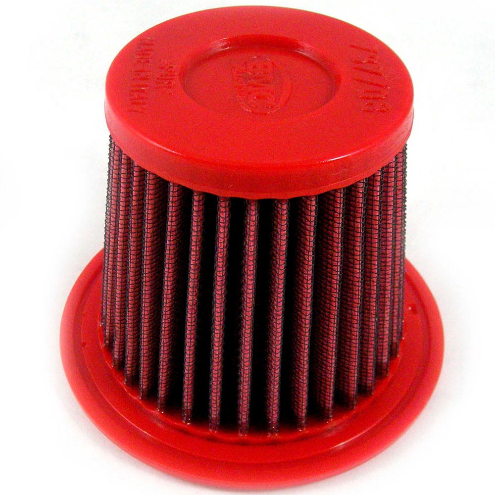 Filtro aire Bmc FM737/08 (Versión standard con menos entrada de aire). El filtro de aire Bmc Filter FM737/08 posee un diseño específico y está diseñado para colocar en sustitución al filtro de aire original. El filtro de potencia Bmc FM737/08 de alto rendimiento cuenta con la misma forma que el filtro standard, pero con una base de filtrado mayor. Este filtro reutilizable se caracteriza por su diseño que mejora notablemente la capacidad de aspiración de la toma de aire en comparación con los filtros tradicionales, mejorando también la calidad de la combustión. El filtro de potencia Bmc FM737/08 consta de una gasa de algodón de múltiples capas impregnada con aceite de baja viscosidad y recubierta con una malla de aluminio tratado con resina epoxy que garantiza la protección contra los humos del combustible y la oxidación debida a la humedad del aire. Las impurezas se filtran gracias al efecto pantalla y de retención, siendo capturadas por las fibras de algodón y retenidas por el aceite. Este proceso no obstruye la entrada de aire y garantiza el rendimiento constante del filtro de aire a largo plazo. El proceso de filtrado es continuo y los cuerpos extraños quedan depositados en el tejido sin bloquear el flujo de aire. El filtros Bmc está realizado mediante un sistema de “moldeado completo” que permite al característico filtro rojo ser de una sola pieza, sin juntas soldadas, lo cual evita la rotura. La goma que se utiliza en los sistemas de filtrado de aire Bmc es muy resistente y duradera, y posee unas características de adherencia óptimas para adaptarse a todas las formas de las cajas de aire.